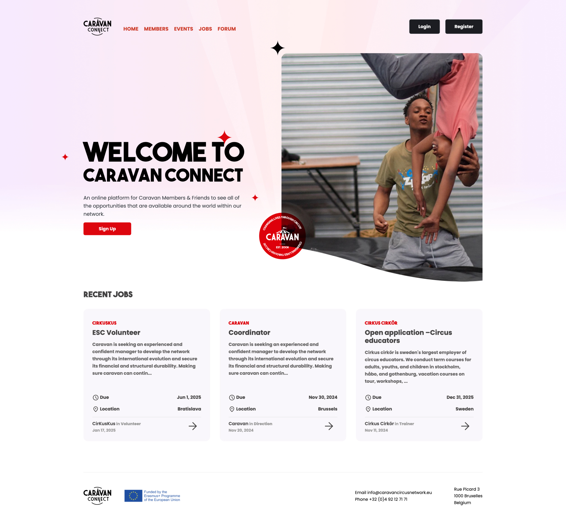 Caravan Connect is an online platform designed for members and affiliates of the Caravan International Youth and Social Circus Network. The platform acts as a centralized hub for connecting global circus professionals, enthusiasts, and young talents, with a particular focus on supporting member organizations, alumni, and emerging talent. It’s an invite-only community.