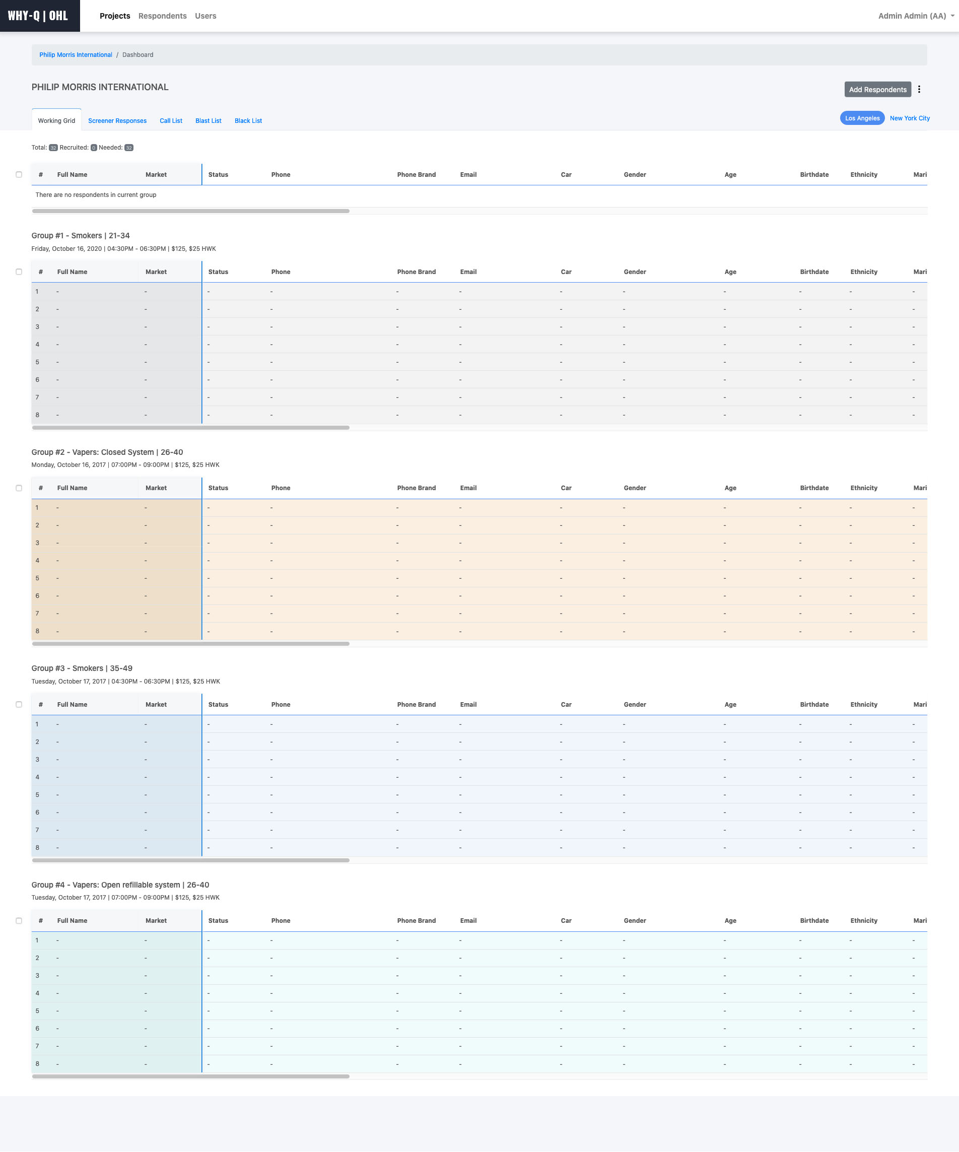 Adding Respondents and Filtering