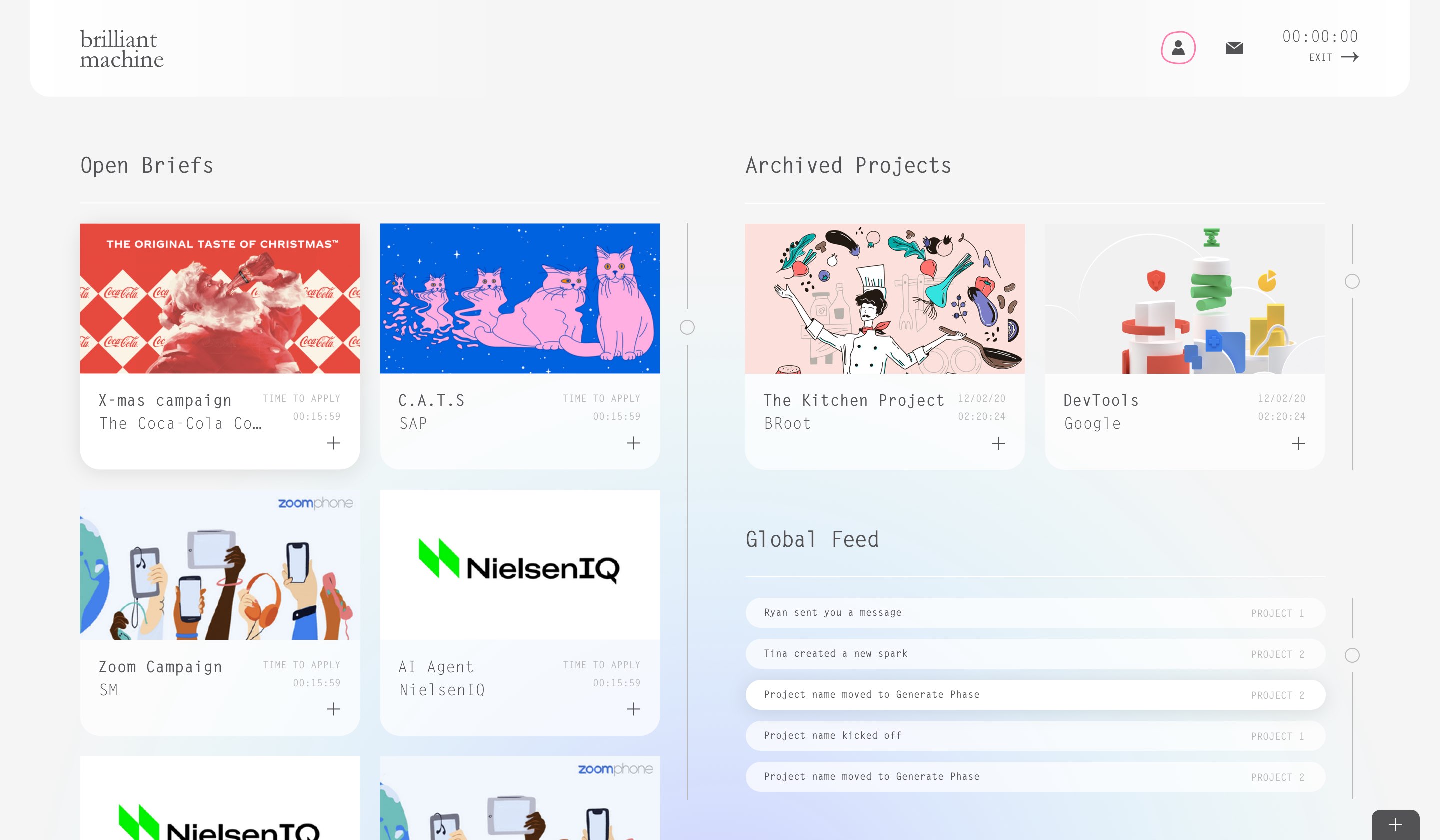 Brilliant Machine Brilliant Machine is a revolutionary platform that assembles customized creative teams to tackle complex challenges. The platform ensures a collaborative process that leverages the unique strengths of every team member.