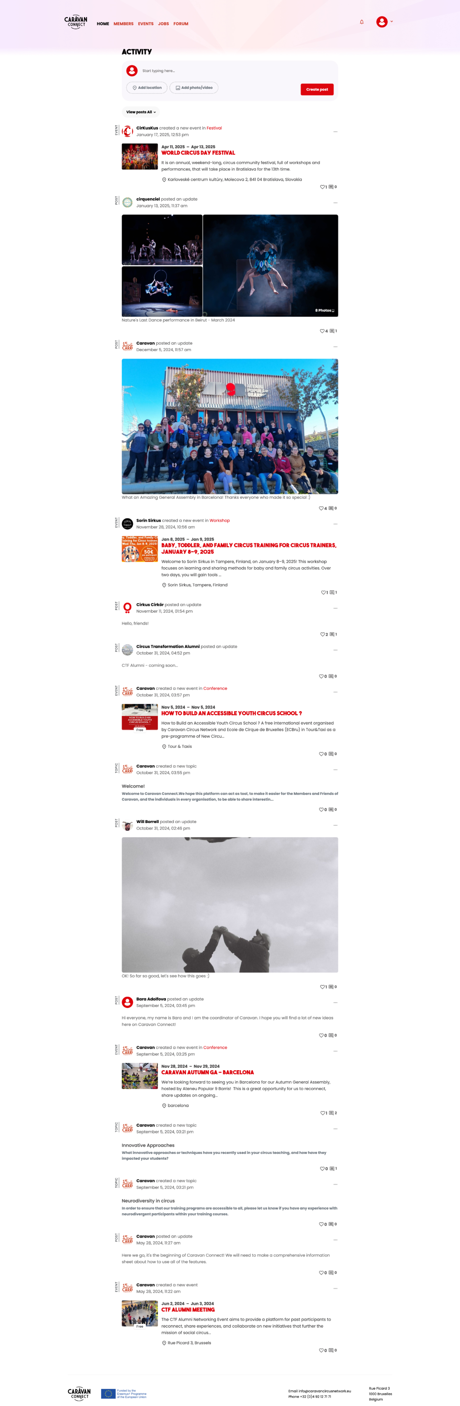 Caravan Connect is an online platform designed for members and affiliates of the Caravan International Youth and Social Circus Network. The platform acts as a centralized hub for connecting global circus professionals, enthusiasts, and young talents, with a particular focus on supporting member organizations, alumni, and emerging talent. It’s an invite-only community.