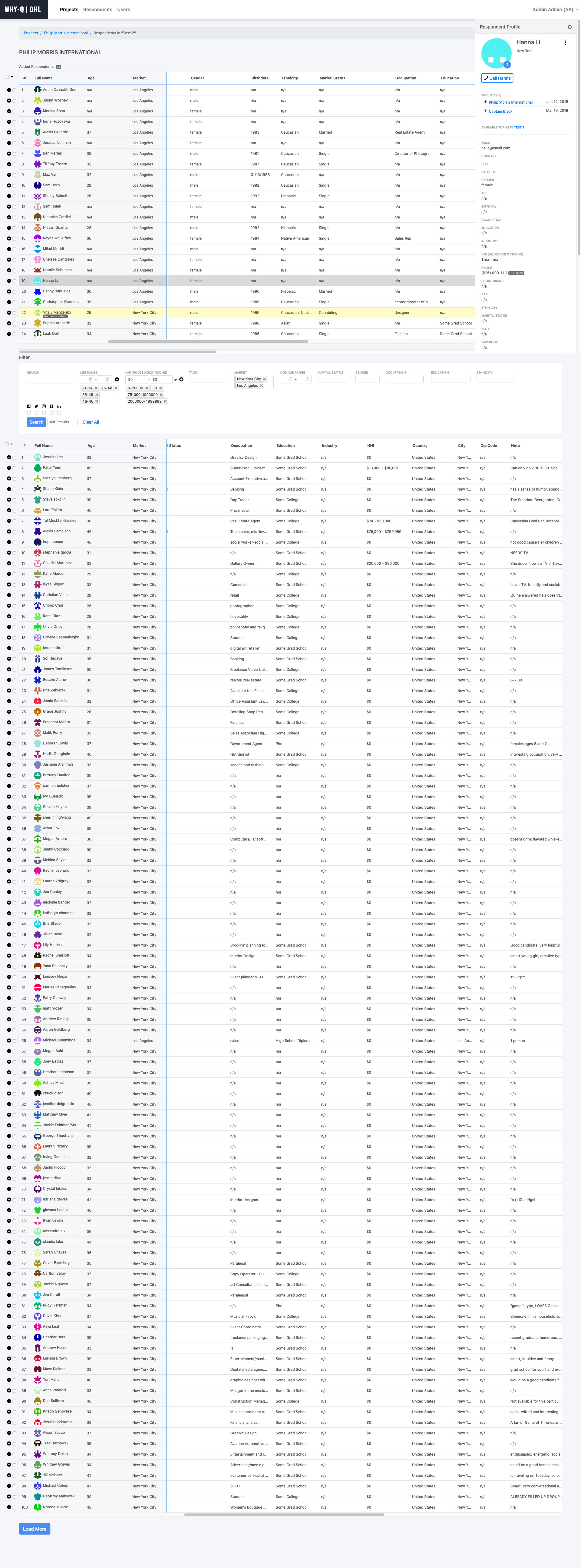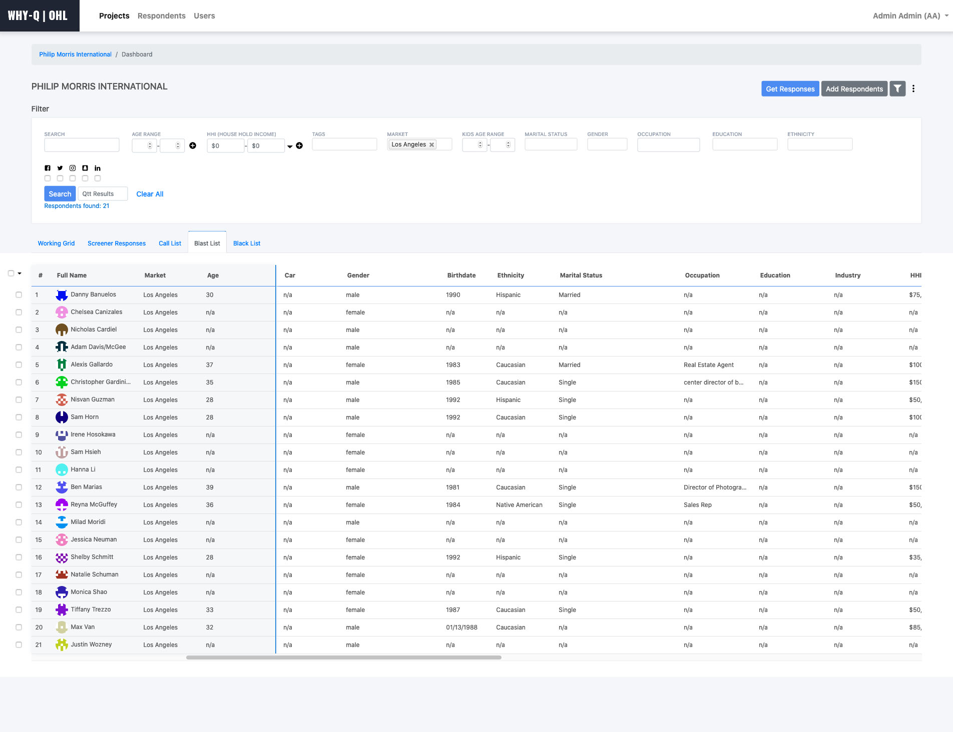 Adding Respondents and Filtering